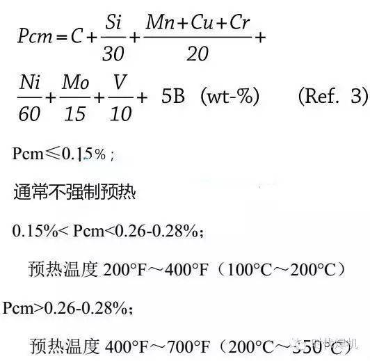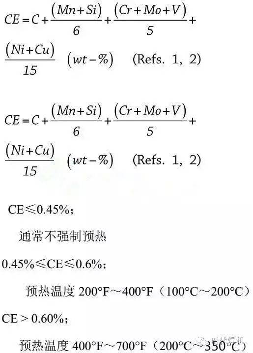 碳當量(CE)可以用作確定預熱的實際必要性和預熱等級的方法。碳當量計算公式如下: