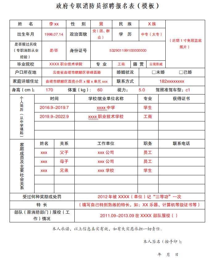 1、政府專職消防員招聘報名表(模板)