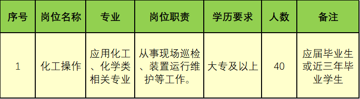 (二)崗位:化工操作、倒班制。