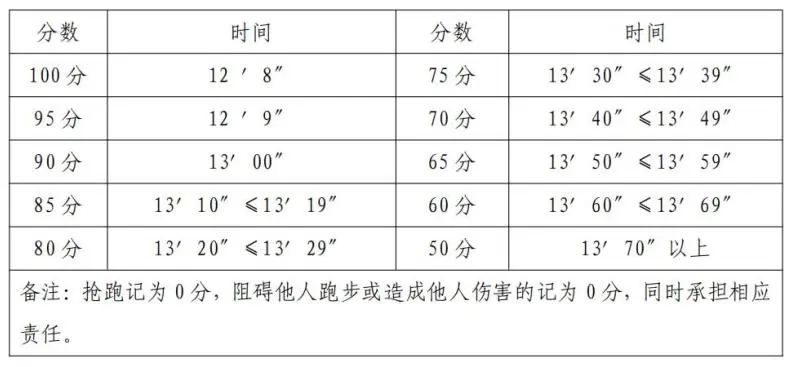2.跑步100米,占比實(shí)操成績(jī)滿分的30%。