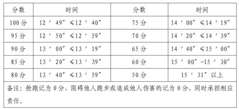 1.跑步3000米,占比實(shí)操成績(jī)滿分的50%。