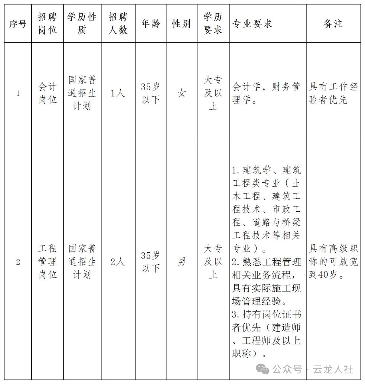 云龍縣城市建設投資有限公司面向社會公開招聘公告