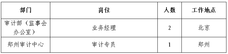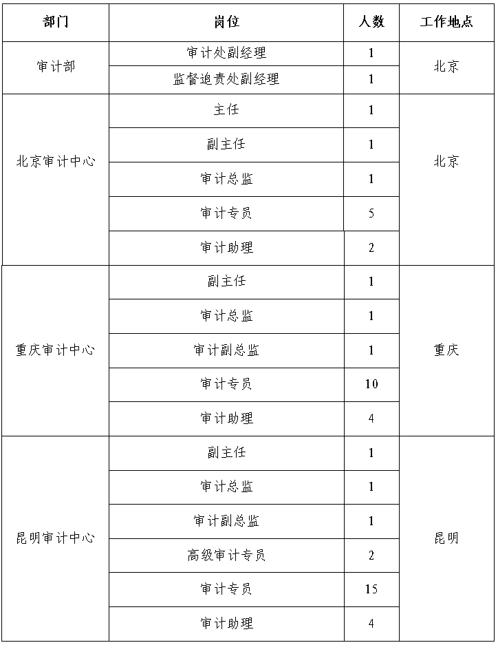 根據(jù)工作需要,經(jīng)研究決定,現(xiàn)面向社會公開招聘方式補充集團總部、有關(guān)單位審計人員65人,F(xiàn)將有關(guān)事項公告如下: