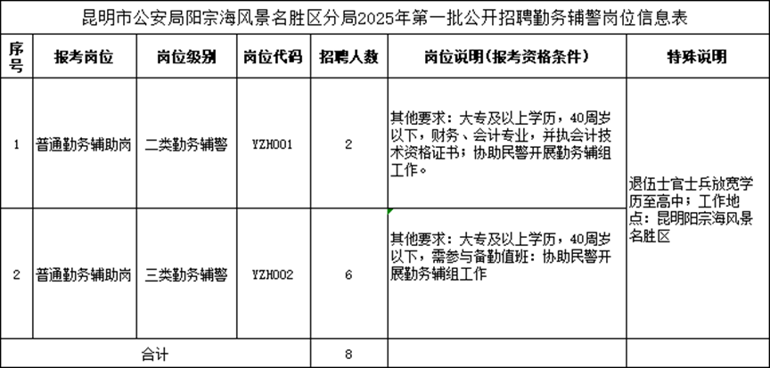本次共招聘8人,崗位為“勤務(wù)輔警”,此崗位男性較為適合,詳見(jiàn)崗位信息表: