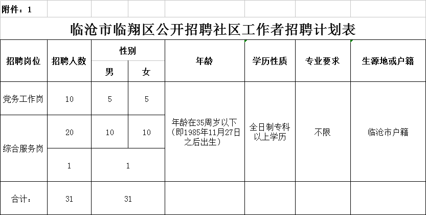 附件:1.《臨滄市臨翔區(qū)公開(kāi)招聘社區(qū)工作者招聘計(jì)劃表》.xlsx